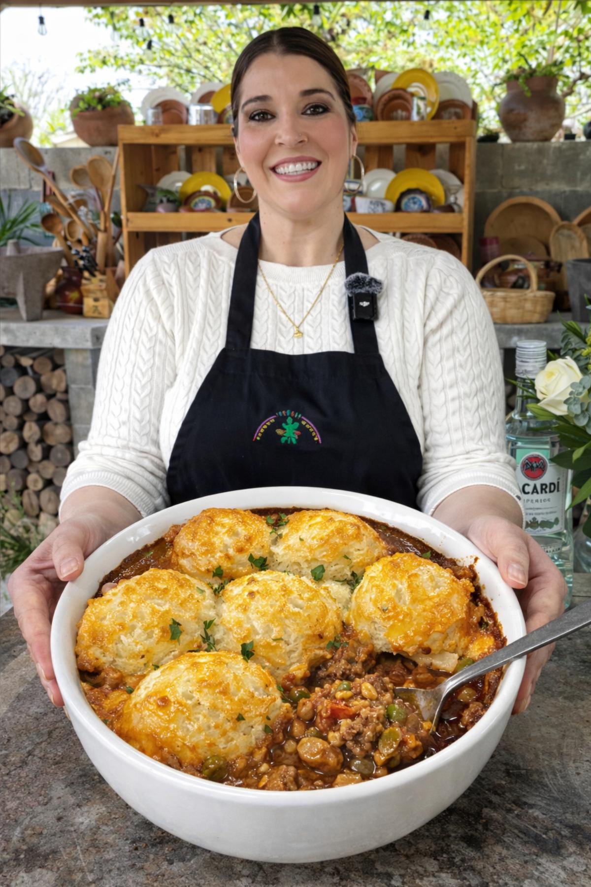 Este delicioso pastel salado combina un guiso espeso de carne con verduras en salsa y una cubierta de suaves panecillos horneados y gratinados. Es un platillo perfecto para comidas familiares, menú del día o venta por porciones. Calientito, abundante y muy reconfortante… de esos que recuerdan a casa.